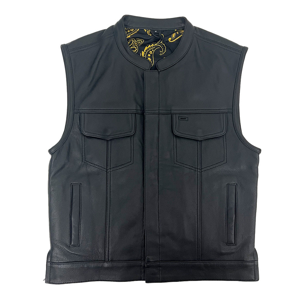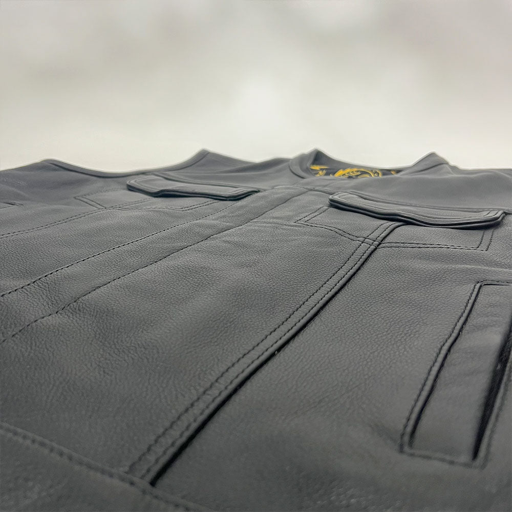 Black and Gold Premium Naked Cowhide Leather Vest - Size Medium (42)