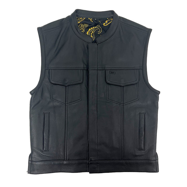 Black and Gold Premium Naked Cowhide Leather Vest - Size Medium (42) - Medium is backordered and will ship as soon as it is back in stock.