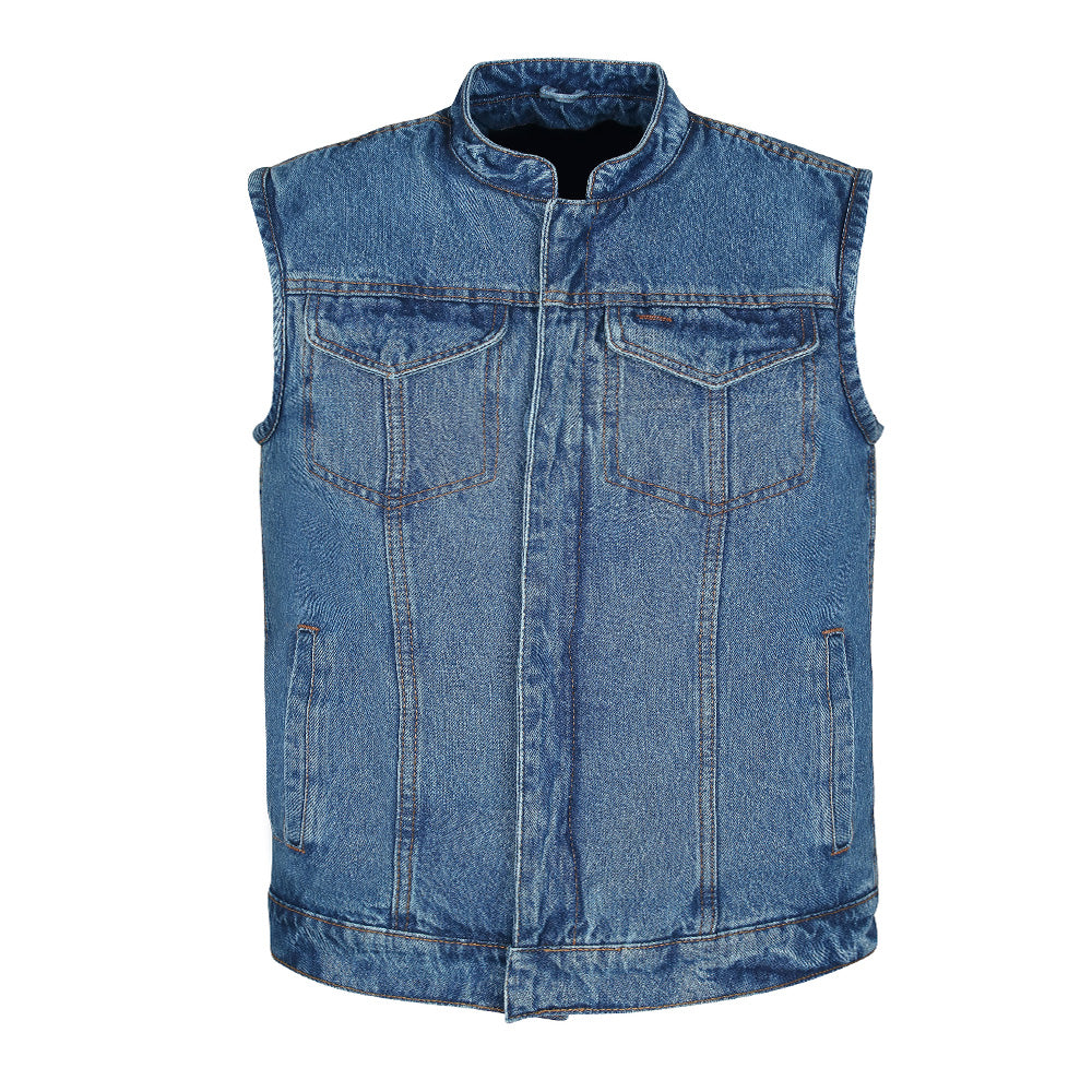 - Blue denim motorcycle club vest