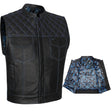 Leather Universe 524BU Diamond Vest with Blue Stitch and Blue and Black Bandana Liner