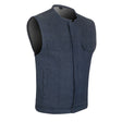 Leather Universe 309 Dark Blue Raw Denim Vest with Rolled Collar and No Liner