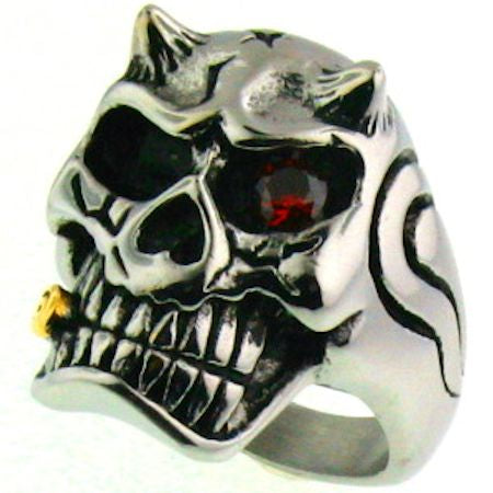 Devil Skull with Red CZ Eye - Stainless Steel Ring