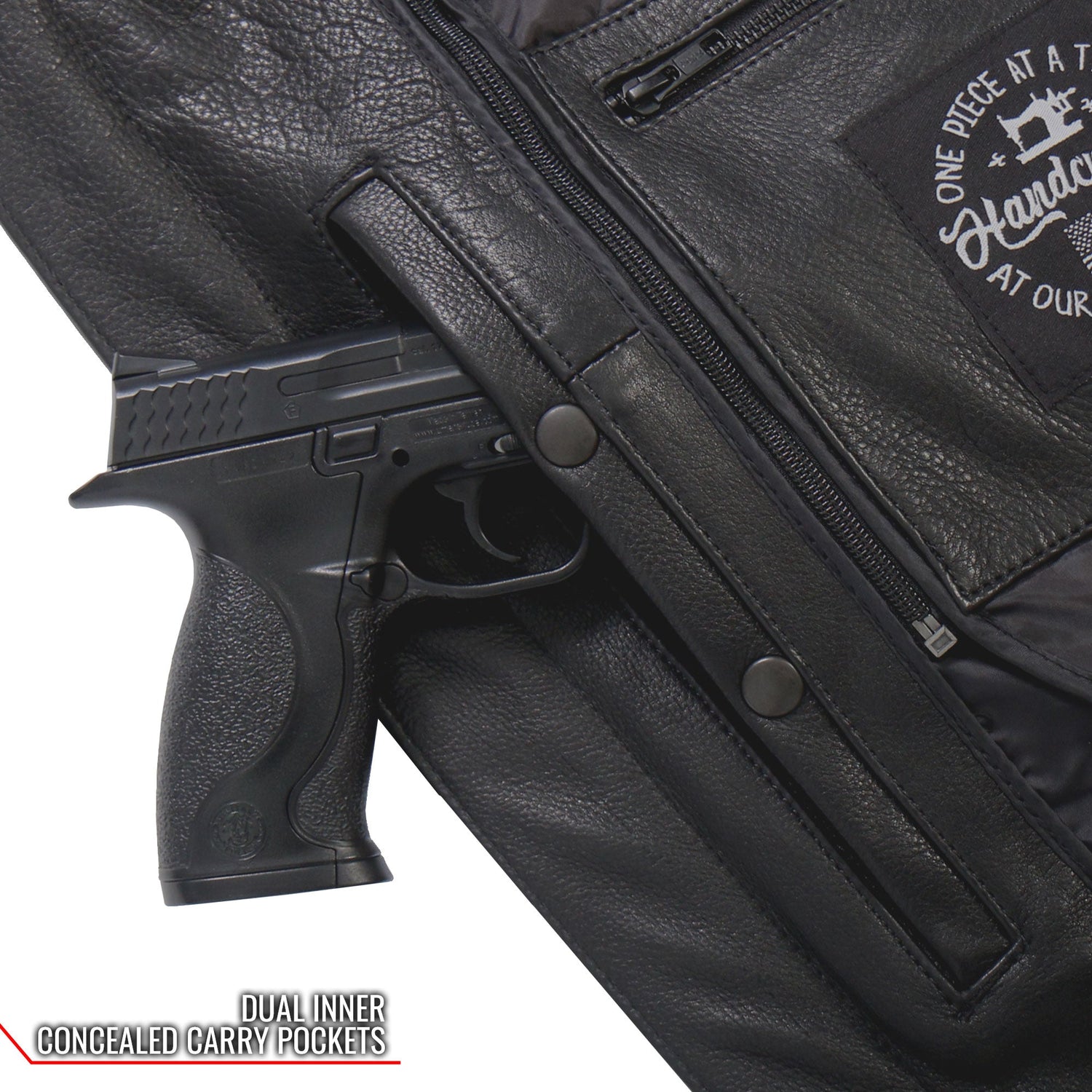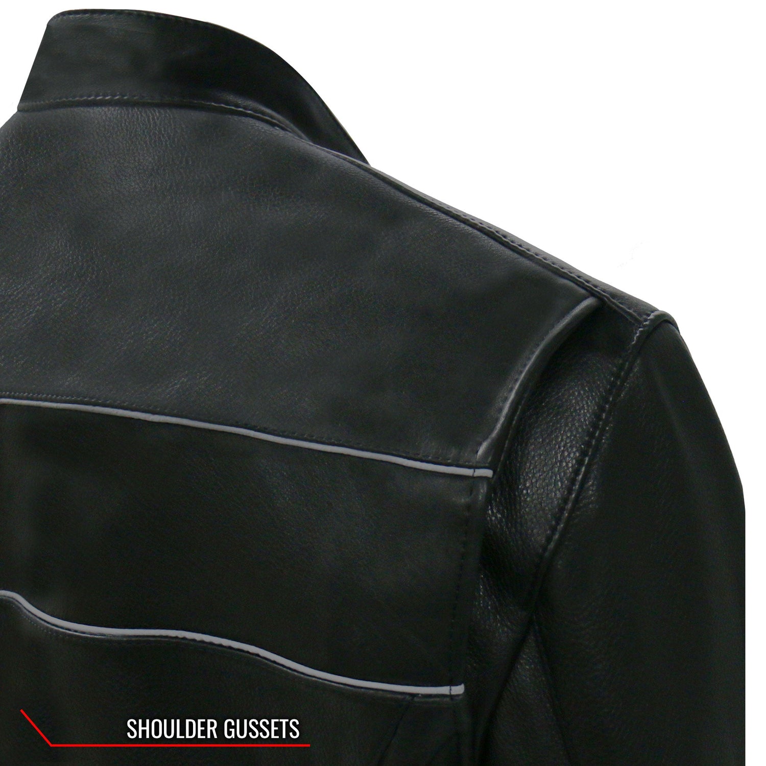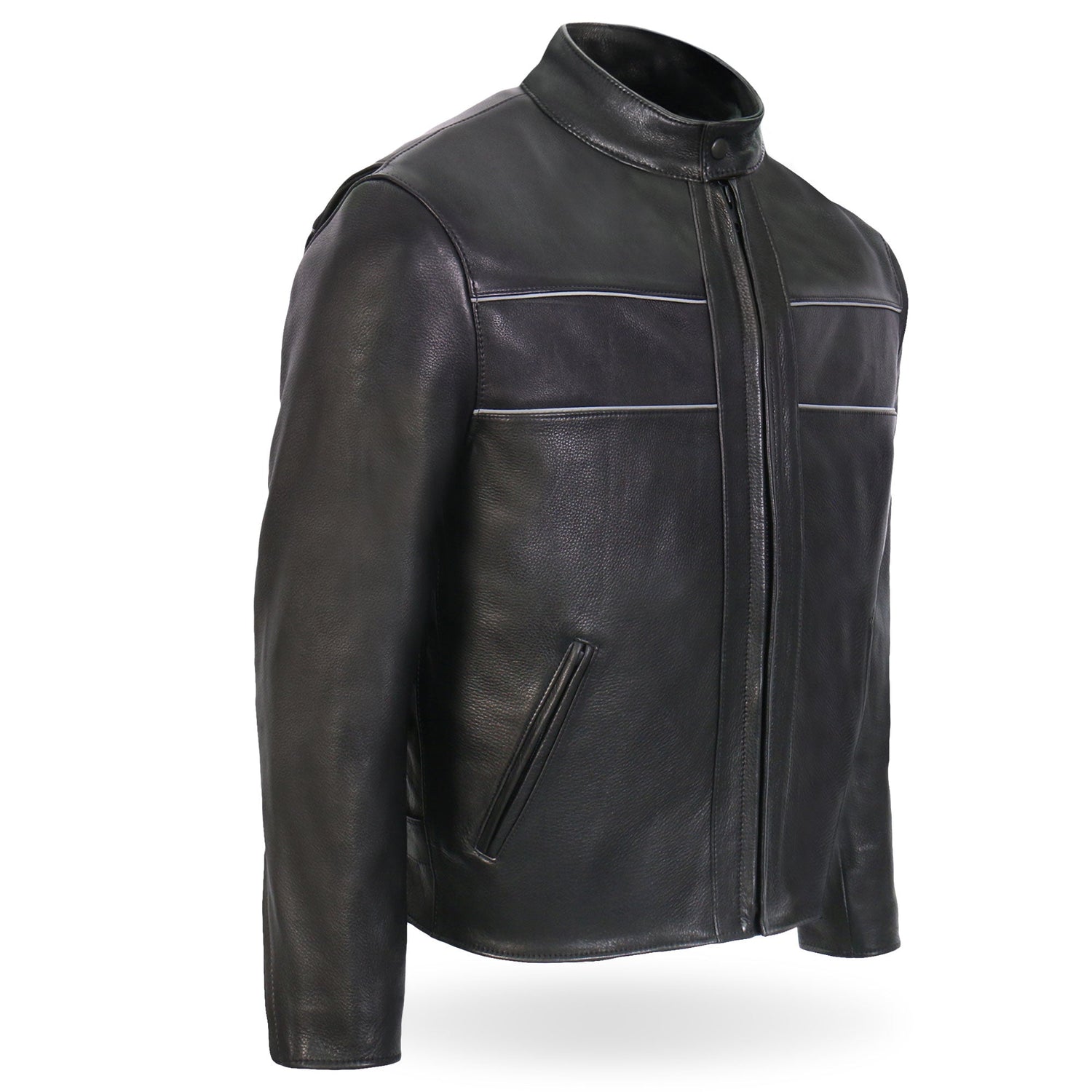 Made in the USA - Hot Leathers JKM5003 Men’s Premium Black Leather Motorcycle Jacket with Reflective Piping