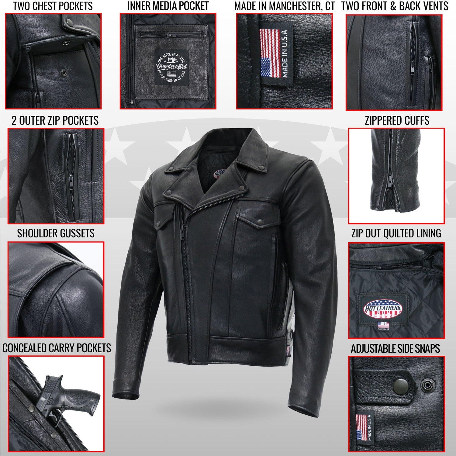 Made in the USA - Hot Leathers JKM5008 Men's Black Premium Leather Vented Biker Jacket
