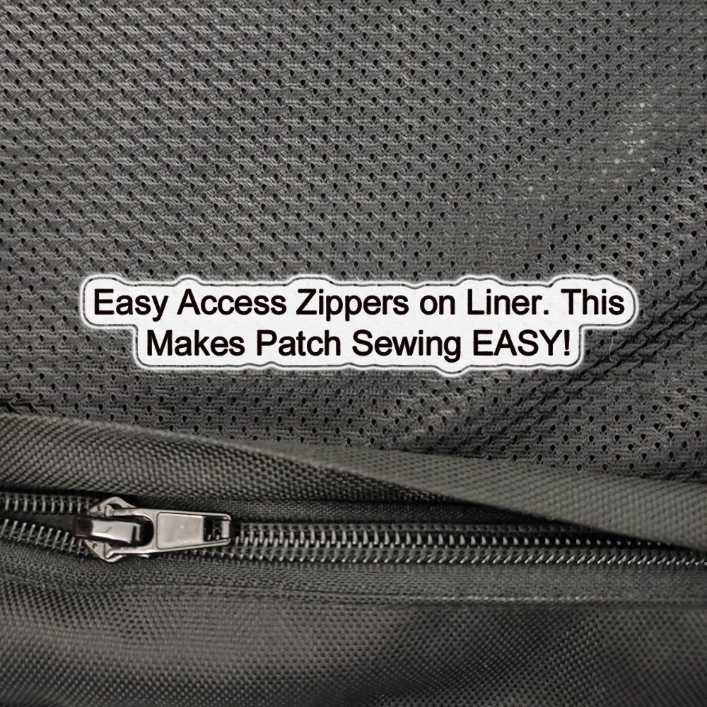 - Liner zippers for easy patch sewing