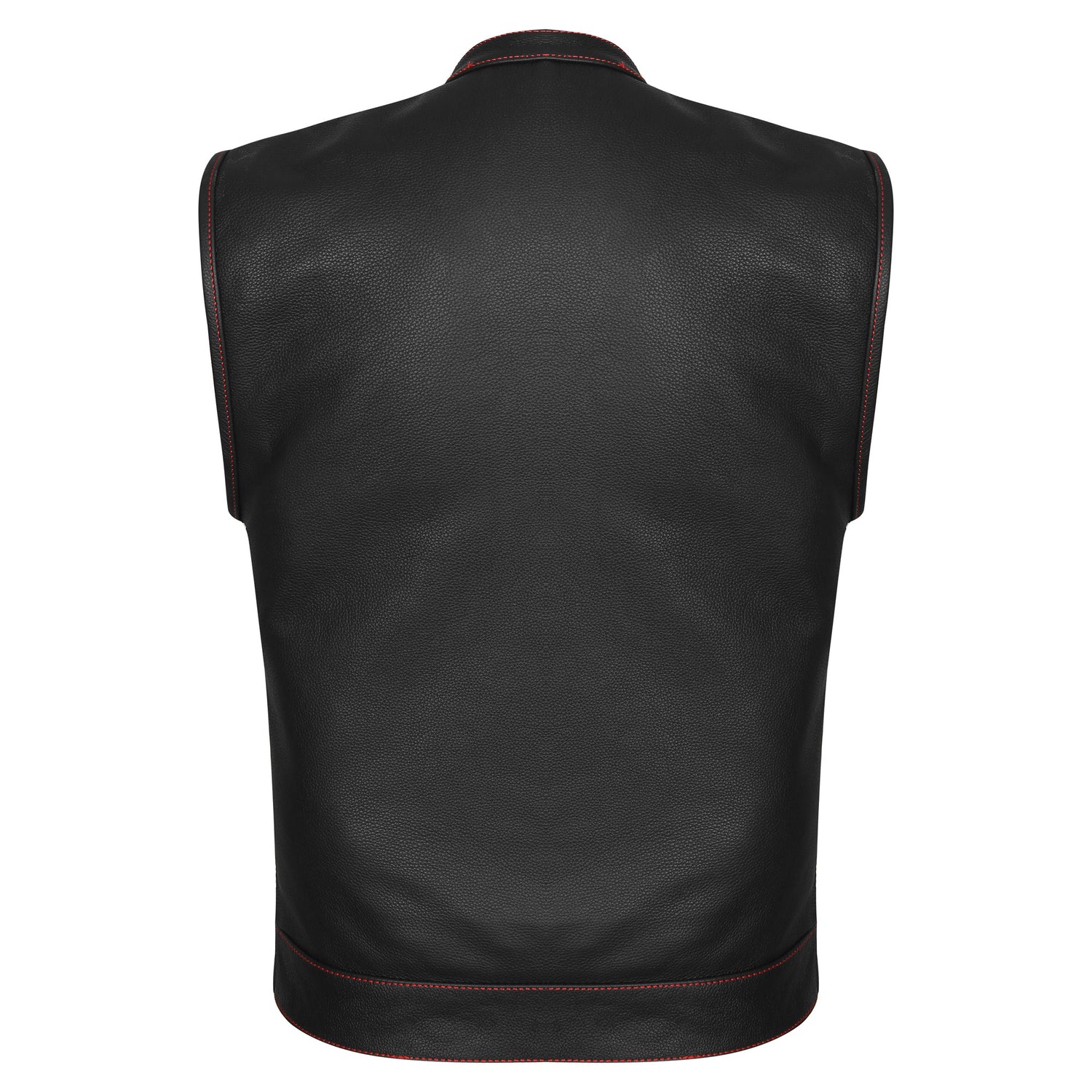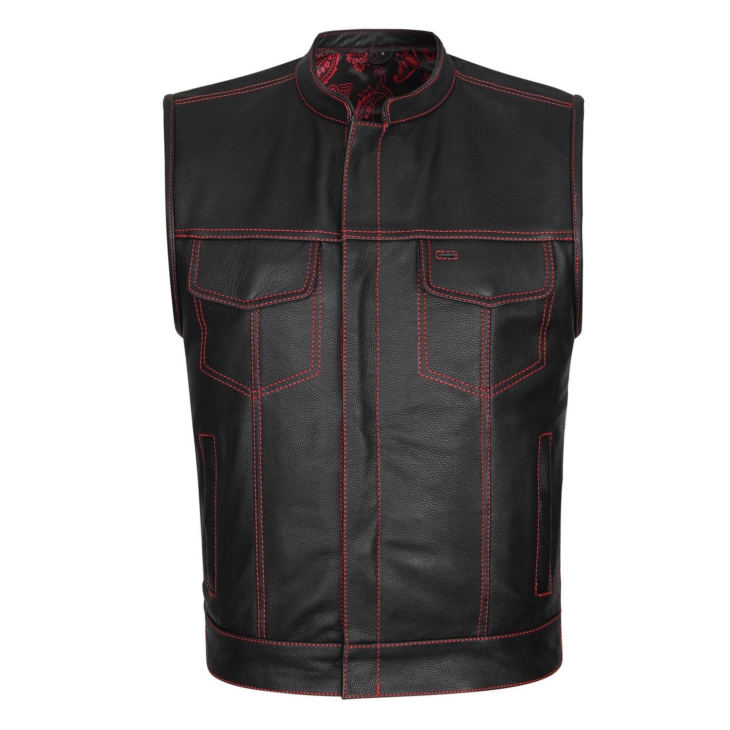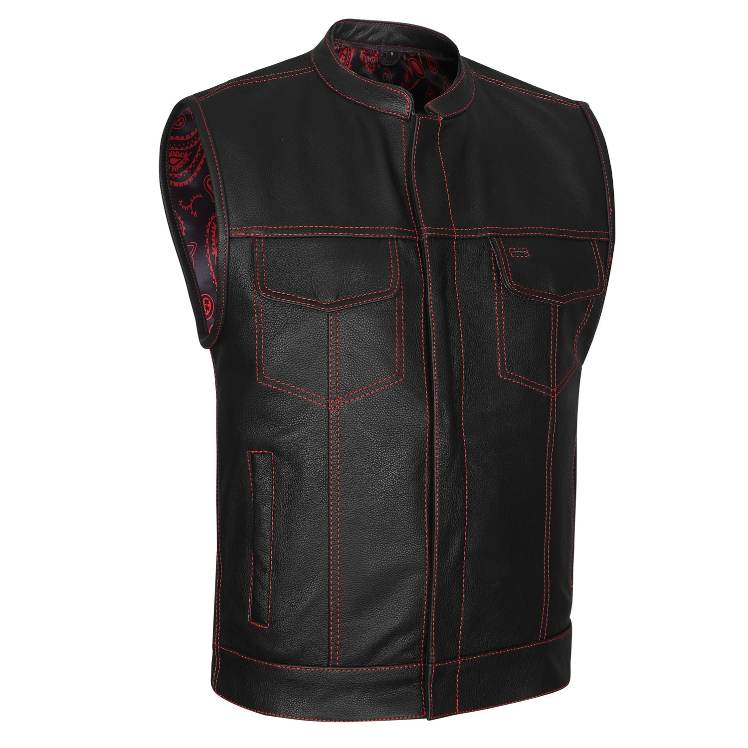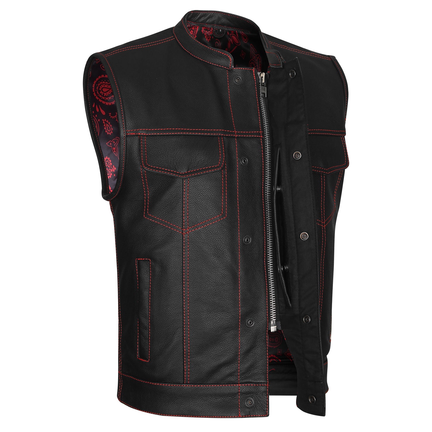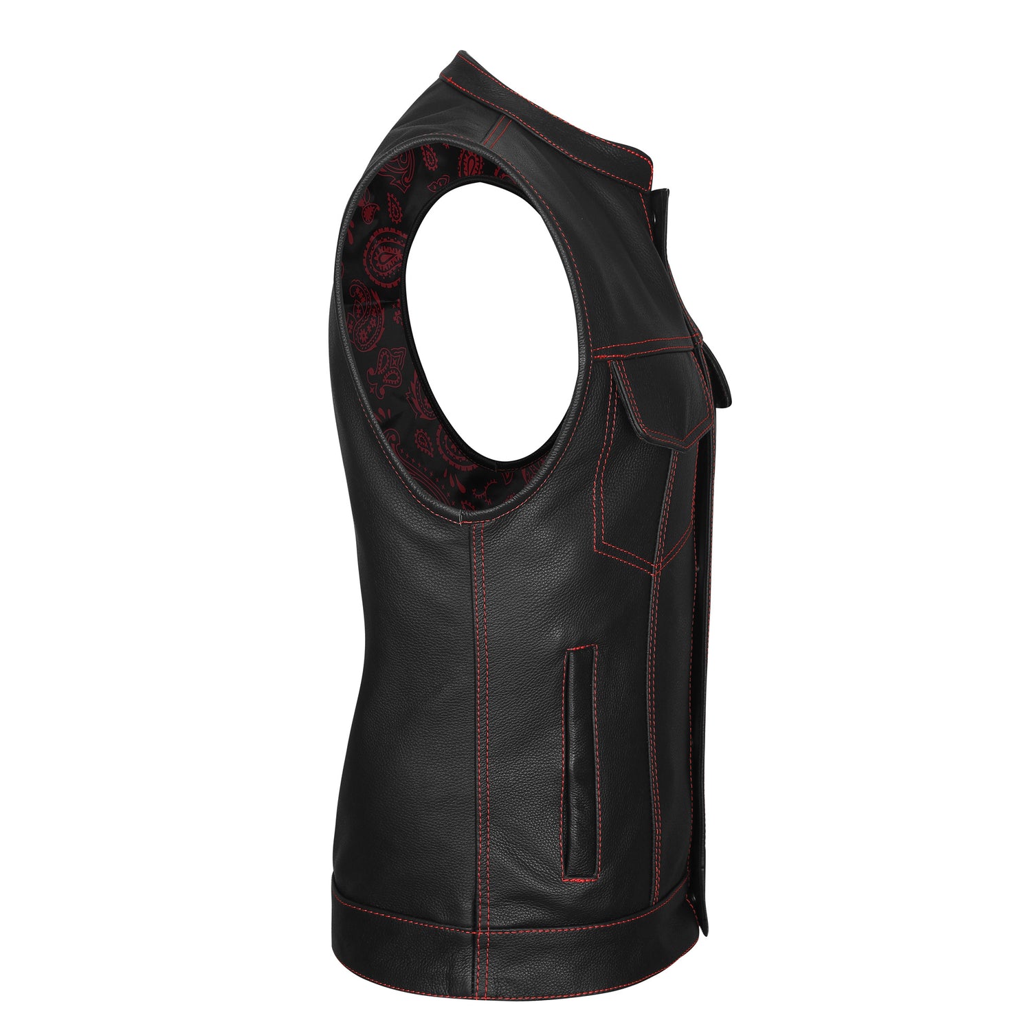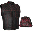 Leather Universe 524RD Diamond Vest with Red Stitch and Red and Black Bandana Liner