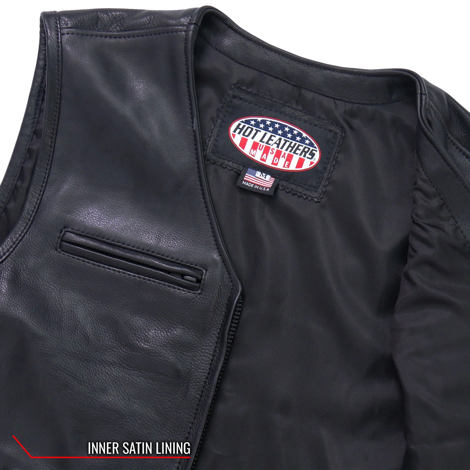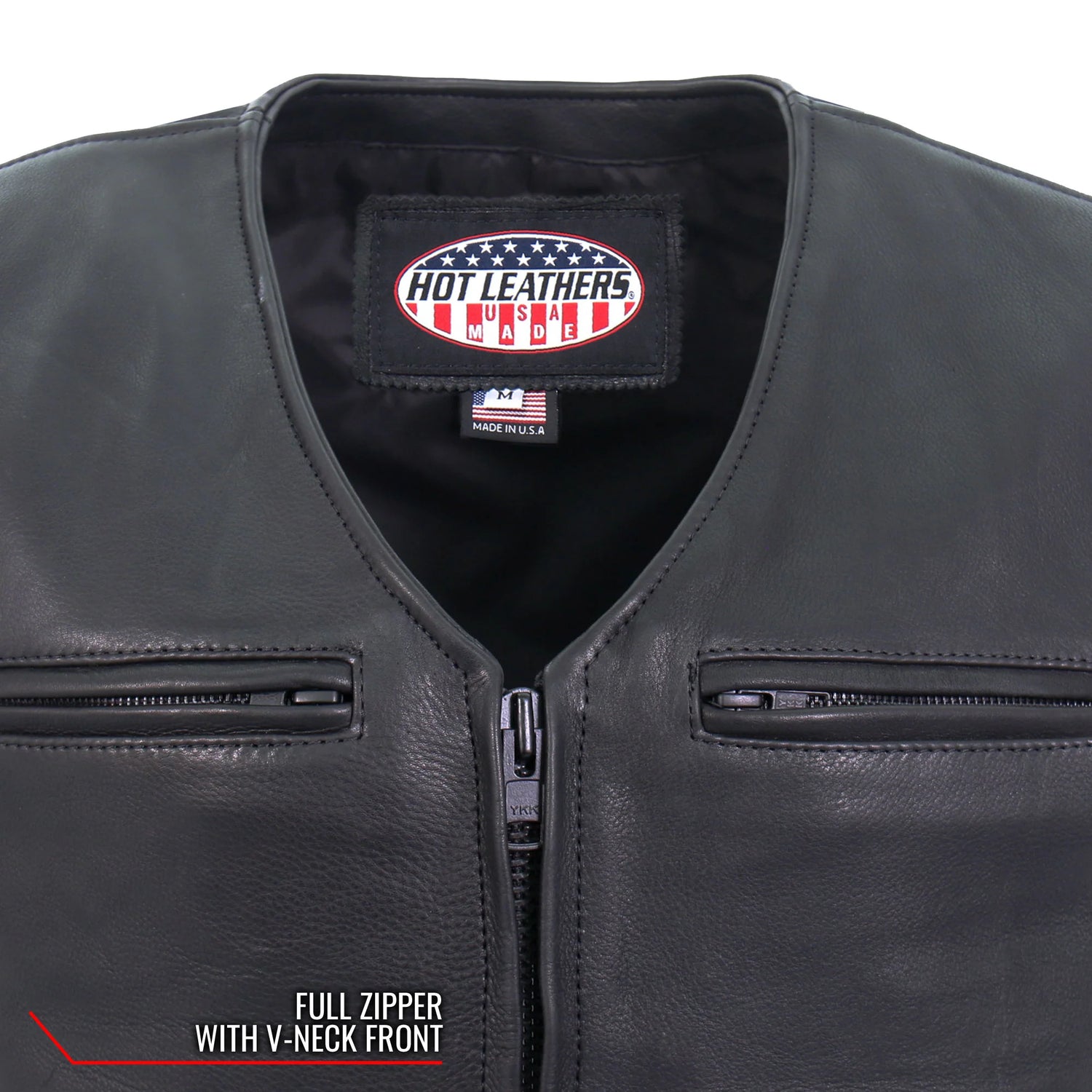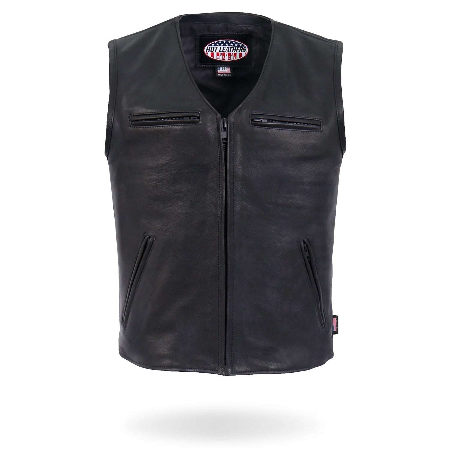 Hot Leathers all new American Made men's club style leather riding vest. This vest is built using heavyweight naked cowhide. This vest is super soft for that already broken in feel. It comes fully lined with a soft nylon lining. Full one piece back gives you plenty of room to have your club colors.